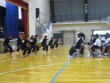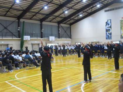 を開きました。3年生による応援団と2年生