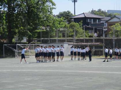 大繩の練習をしています。縄の回し方、みんなの