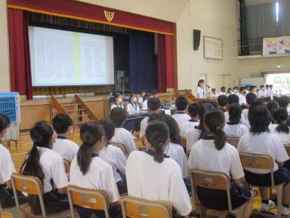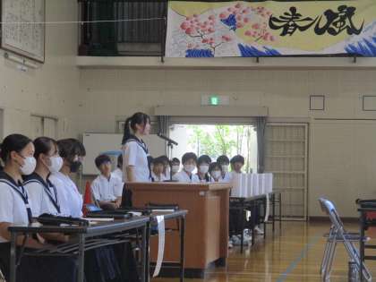 生徒総会を開きました。(1) 公開日 2024/05/31 更新日 2024/05/31 教育活動の様子 5月30日、生徒総会を開きました。 生徒会スローガンは「結糸(ゆないと)」 です。英語の「Unite」は団結する。一つになると いう意味があります。縦のつながりを大切にして 学校全体が一つに結ばれていくようにという意味が こめられています。