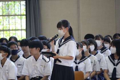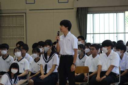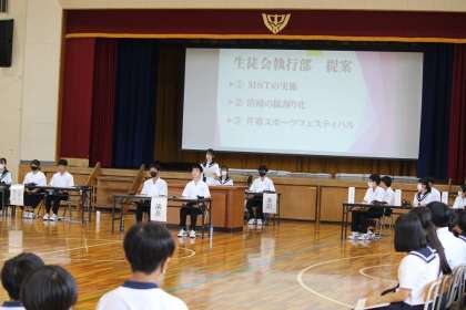 生徒総会を開きました。(2) 公開日 2024/05/31 更新日 2024/05/31 教育活動の様子 5月30日の生徒総会の様子です。 生徒会執行部の提案、それに対しての質疑 応答をして採決をしました。 追加の提案を受け入れながら承認されました。