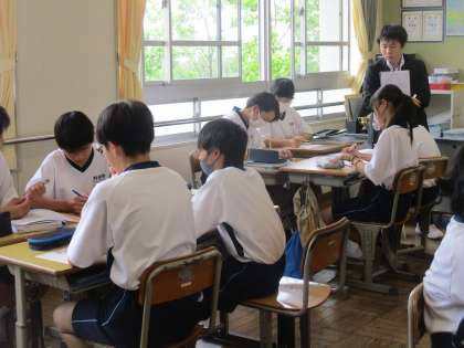教育実習生の授業です。(1) 公開日 2024/06/04 更新日 2024/06/04 教育活動の様子 5月20日から教育実習生が来てます。これは先週 の授業の様子です。 この記事では、1年生の数学科の授業を紹介します。 教員は、4月1日から「先生」として子どもたちの 前に出て、授業をします。 2か月、3か月の研修を経てから、営業や窓口に 出る他の業種とは違います。それだけに、この教育実習 は大変、重要なものになります。