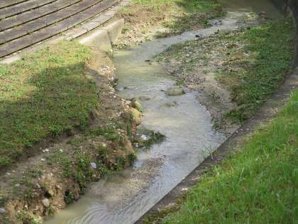 勢いで土が削れているのがわかります。
