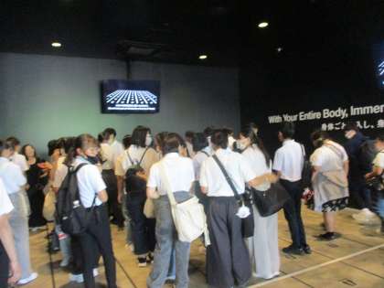修学旅行の様子です。(7)チームラボへ 公開日 2024/06/19 更新日 2024/06/19 学校行事 6月11日 東京タワー内のREDチームと別にバスで 移動して、チームラボへ向かいます。 説明を聞いて・・・裸足になってください。 水が流れているところがあります。 へえ・・・。そうなんだ。