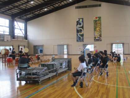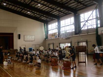 吹奏楽部、和太鼓部の発表会前のリハーサルの様子です。(1)