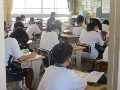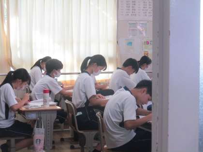 朝、テスト前の学習をする時間の様子です。 公開日 2024/09/10 更新日 2024/09/10 教育活動の様子 3日間、集中してテストに取り組んで います。教科が多いので、計画的に学習 を進めてきたと思います。 2日間のテストが終わり、あとは最終日 になります。