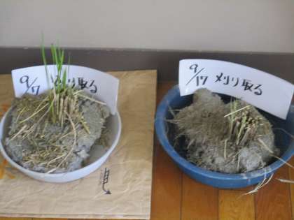 下の写真は、刈り取った後の場所の違いです。