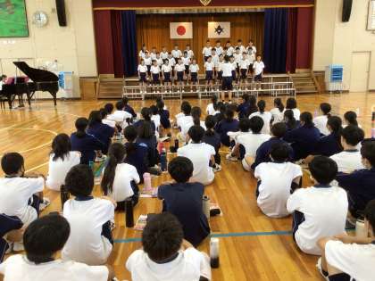 合唱 縦割り練習会 1時間目 公開日 2024/10/20 更新日 2024/10/20 教育活動の様子 10月18日の1時間目から4時間目で、 合唱コンクールに向けての縦割り練習会を 実施しました。 1時間目は1組連の時間です。 体操をして身体をリラックスをさせて、 歌い出しました。各組連で、3年生主導で 工夫があります。
