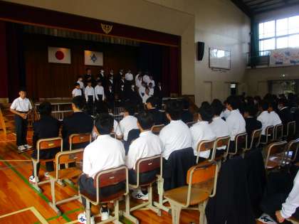 合唱コンクールのリハーサルをしました。(1年生) 公開日 2024/10/23 更新日 2024/10/23 学校行事 10月22日、学年でリハーサルを しました。 1年生は、初めての合唱コンクール です。座席からの出入りを教えて、流れ を確認した後で、実際の順番通りに合唱 を舞台で歌いました。 見られていると緊張しますね。この 緊張にも慣れていつものように響きの ある声で歌いましょう。