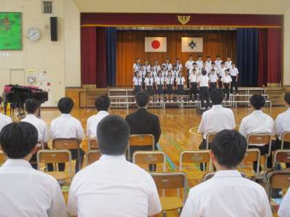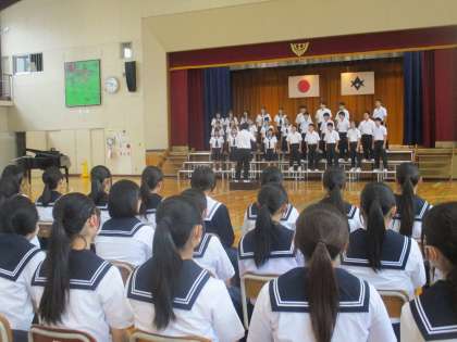 合唱コンクールのリハーサルをしました。(3年生) 公開日 2024/10/23 更新日 2024/10/23 学校行事 10月22日、学年でリハーサルを しました。 3年生は、1年生から合唱を復活して 積み上げてきています。3年間の最後の 合唱になります。思いを込めて最高の 合唱を歌い上げると思います。 とても楽しみです。
