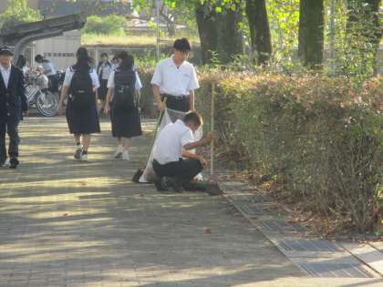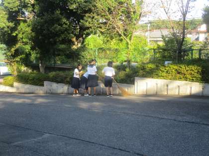 合唱コンクールの朝 清掃ボランティア 公開日 2024/10/24 更新日 2024/10/24 WE LOVE いさと 10月24日は合唱コンクール。 前日の雨で、外清掃ができていません。 毎朝活動している3年生のボランティア が、きれいにしてくれました。