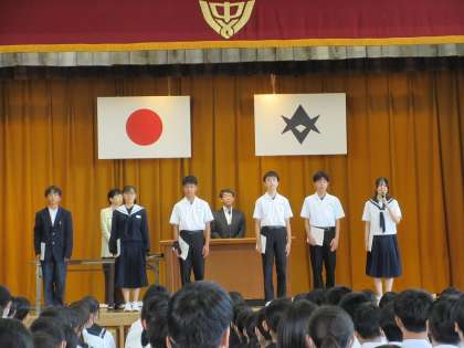 10月28日 認証式 公開日 2024/11/05 更新日 2024/11/05 学校行事 後期の生徒会役員、学級役員の 認証をしました。 集団の中で、リーダーとしての 力を発揮できるように期待してい ます。 そして、それぞれ一人一人が 集団を支える、リーダーを助ける フォロアーとして活躍してほしい です。