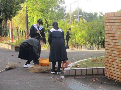 朝のボランティアを行っています。 公開日 2024/12/05 更新日 2024/12/05 WE LOVE いさと この季節、落ち葉が毎日毎日、落ちて きます。 ボランティアの子どもたちが、朝清掃を しています。 3年生が自主的にやってきましたが、 今、後輩の2年生・1年生にも呼び掛けて この行動をつなごうと取り組んでいます。