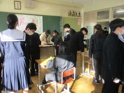 3年生は最終日に学年レクをしました。(2) 公開日 2024/12/23 更新日 2024/12/23 教育活動の様子 12月23日、明日から冬休みです。 3年生は学年レクで、班でいろいろな 教室をまわって、30gを測るゲーム や音あて?ピンポン、英語の迷路など 楽しそうに過ごしていました。 入試への勉強にも、リフレッシュの 時間は大切です。メリハリ、緩めること をしっかりとって、集中する時には 全力で・・・。