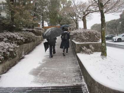 雪が積もりました。(2) 公開日 2025/01/10 更新日 2025/01/10 校長メッセージ みんなが安全に登校できること を願っていました。 車での出勤も、安全に来られて よかったです。 通用門で坂道なので、雪を踏み 固めて凍らないように、雪かきを して待ちました。 (写真2枚目、坂の上から) おはようございます。元気に 登校できました。