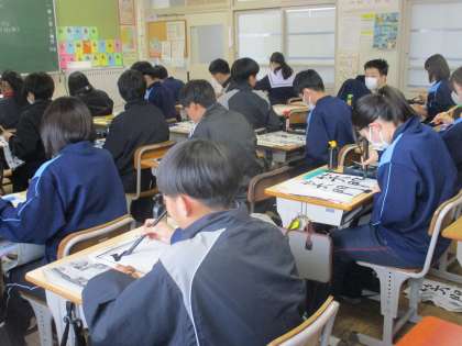 1月7日、冬休み明けの初日 でした。真剣に「笑門来福」を 願って書き上げました。