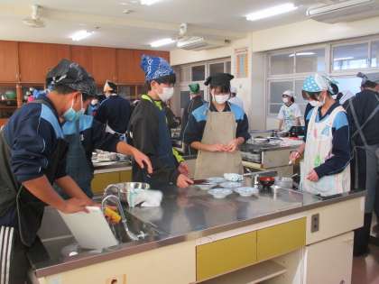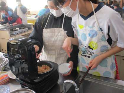 2年生の家庭科の学習の様子です。(調理実習) 公開日 2025/01/23 更新日 2025/01/23 教育活動の様子 2年生の家庭科の学習では、調理実習を しています。 今回は、ふろふき大根と鮭ご飯を調理 しています。 手慣れた手つきの子どもたちと、初めて お米を炊いているという子どもと、多様 ですね。鮭ご飯でラップに包んでおにぎり を握り、食べました。 美味しくできました。家でもまた調理や お手伝いをしてください。
