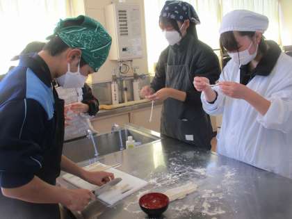 2年生 家庭科の学習の様子です。 公開日 2025/03/01 更新日 2025/03/01 教育活動の様子 2年生は家庭科の学習で調理実習 をしています。 いろいろな種類の調理をしていま すが、今回のメニューは「うどん」 です。 手作りのうどん 美味しそうですね。 3年前を思うと、普通に実施できる ことの幸せを感じます。