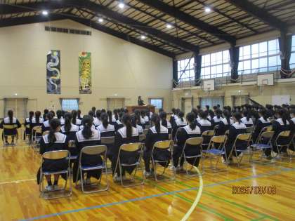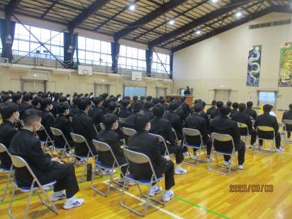 卒業式の練習をしています。 公開日 2025/03/04 更新日 2025/03/04 教育活動の様子 3月3日、3年生の卒業式練習 の様子です。 公立高校の一般入試もすべて終わり そろっての練習になります。