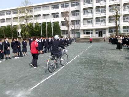 運動場では、実際に自転車や自動車を使った講習を受けました。「注意1秒、けが一生」です。自分の命は、自分でしっかり守りましょう。