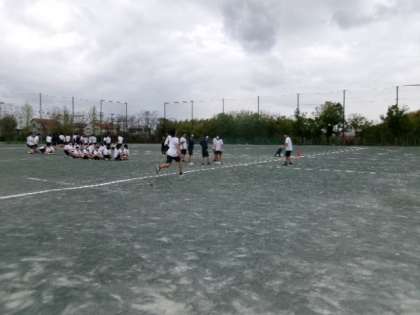 体育祭学級対抗リレーの練習です。3年生はスピードと迫力があり、カーブがきつそうに見えます。