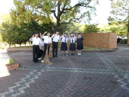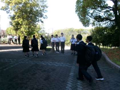 自主的にあいさつ運動をしている生徒たちがいました。吹奏楽部の勧誘も兼ねているようです。
