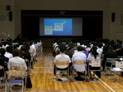 3年生は体育館で進路説明会でした。あっという間の1年です。少しずつでよいので、しっかりじっくりと考えていきましょう。