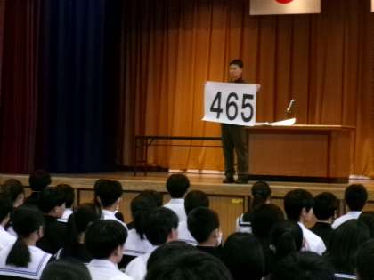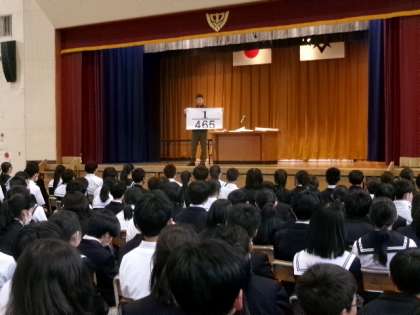 認証式の後生徒指導主事より「地域に愛される井郷中生になってほしい」という話がありました。全校生徒465人、一人一人が主役です。