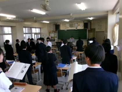3年生が音楽で「オー・シャンゼリゼ」や校歌などを歌っていました。男声の響きや女声の美しさなど、中学生の歌声は流石ですね。