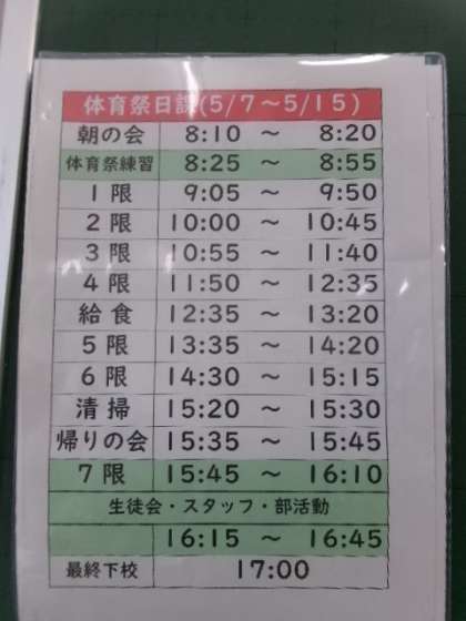 体育祭特別日課が始まりました。
