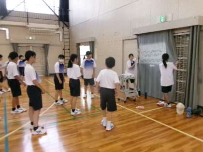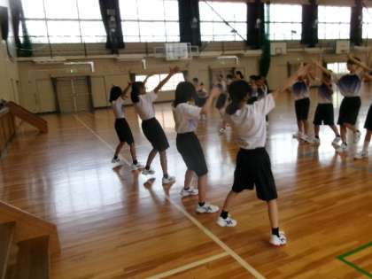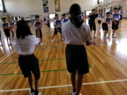 1年生が体育館でパフォーマンス練習をしていました。乗りのよい曲のダンスなんですね。ビシッと揃うとカッコいいでしょうね。
