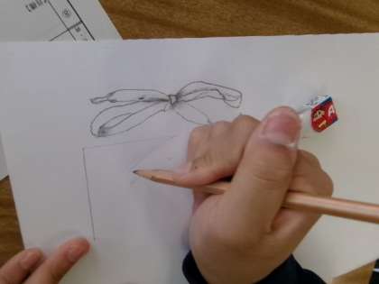 1年生美術スケッチの授業の様子です。みんな静かに集中して描いています。