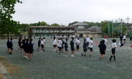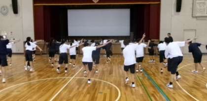 体育祭のパフォーマンス練習です。動きを揃えるだけでも大変です。