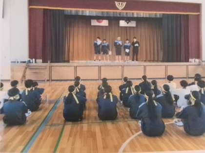 5月12日(月)午後、体育祭に向けた組連結団式がありました。異学年交流の貴重な場ですね。