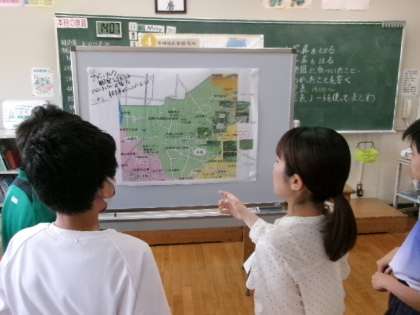123学級が「井郷地域探検」の振り返りをしていました。活発に発言できていましたね。