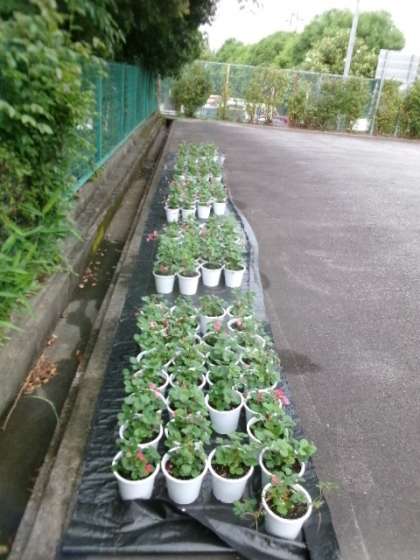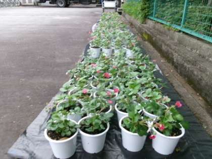 2年生が技術家庭科でイチゴの栽培をしています。順調に育っています。