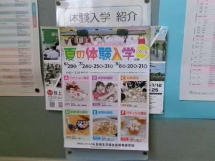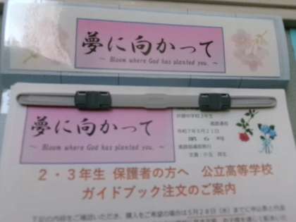 進路の掲示板、進路通信「夢に向かって」や体験入学予定などです。