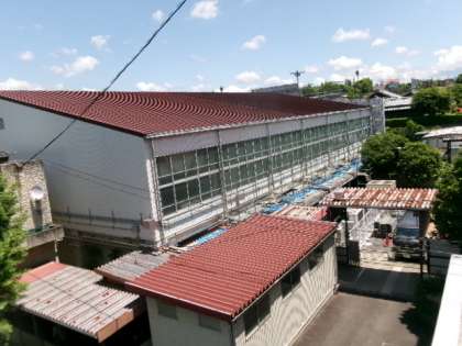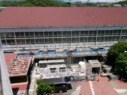 体育館の周り全体に、足場が設置されていくようです。