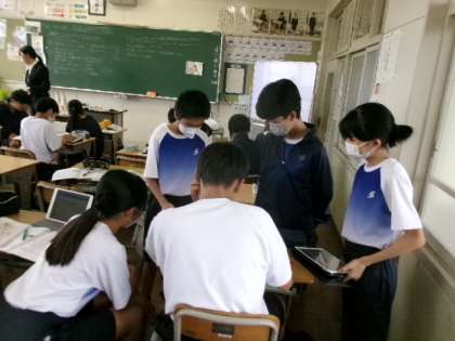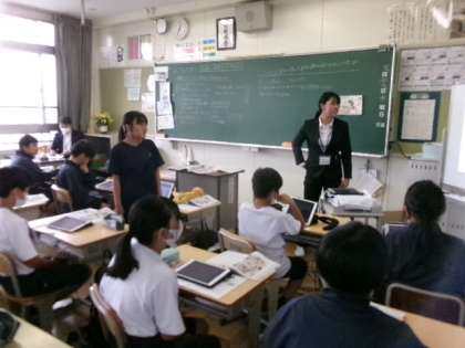 教育実習生が道徳で研究授業をしました。著作権や肖像権について考えました。
