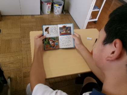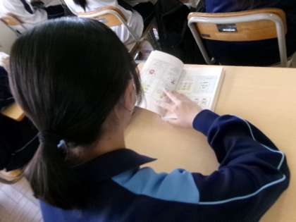 テストが終わり、再度朝の読書が始まりました。写真の3人は英語の本を読んでいました。