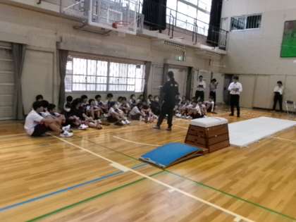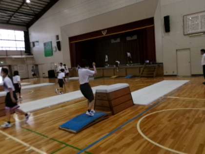 教育実習生の研究授業が1年生の体育でありました。タブレットで撮影し合いながら、とても意欲的に学んでいました。