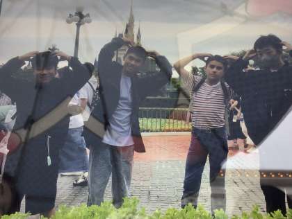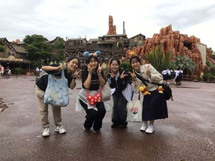 悪天候でも友達と一緒だからか、とても楽しそうですね。