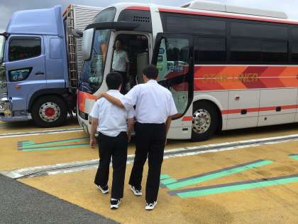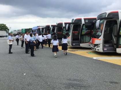 事故渋滞で足柄サービスエリア到着が30分程度遅れました。浜松サービスエリアでもお伝えしますが、学校到着も30分程度遅れそうです。お迎えをよろしくお願いします。