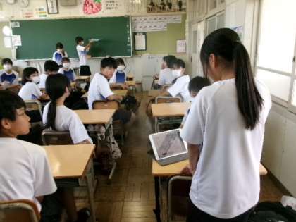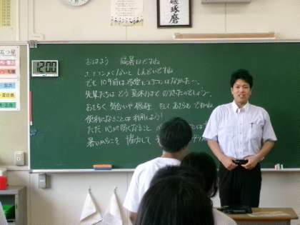 6月18日(水)1・2年生の朝の会の様子です。しっかりと話を聴いています。