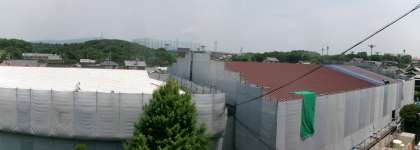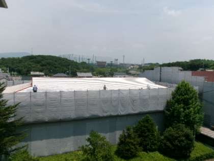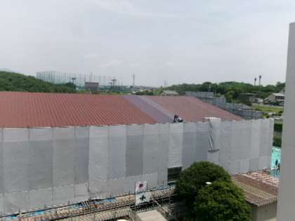 公共施設長寿命化工事として、体育館武道場の屋根と壁の改修工事が始まっています。