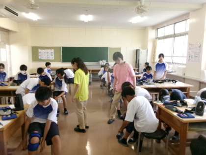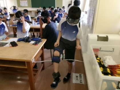 地域の施設から4名の講師の方をお招きし、1年生が高齢者体験をしました。