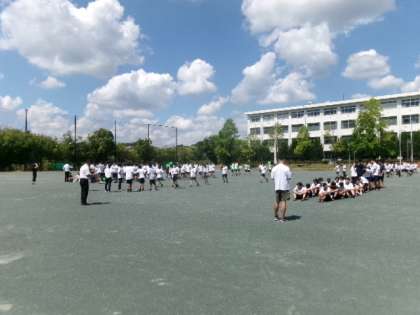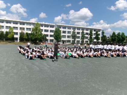 11時40分から避難訓練を行いました。今回は休憩時間中の訓練でしたが、素早く落ち着いて運動場に避難することができました。