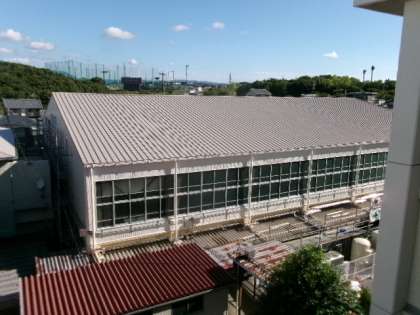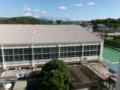 体育館と武道場の屋根と壁が、きれいに塗りなおされました。