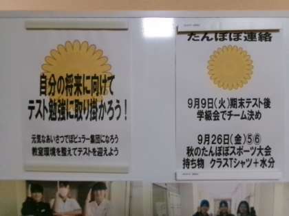 3年廊下の学年掲示です。「自分の将来に向けて〜」