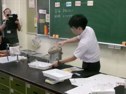 9月17日(水)第5校時第1理科室にて、1年生理科「物質の状態変化」の授業研究会を行いました。しっかりと考えを深められましたか。