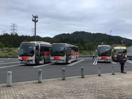 PAで4台のバスが合流しトイレ休憩後宿泊地に向けて出発します。